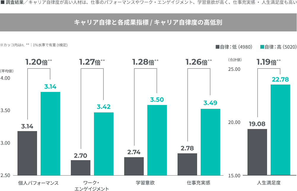 人材のキャリアに対する主体性と変化適応力は重要な要素である一方、